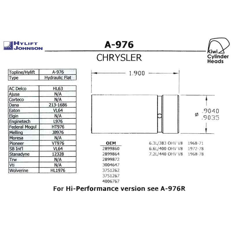 Chrysler Lifter Chrysler V8s Cam/Follower